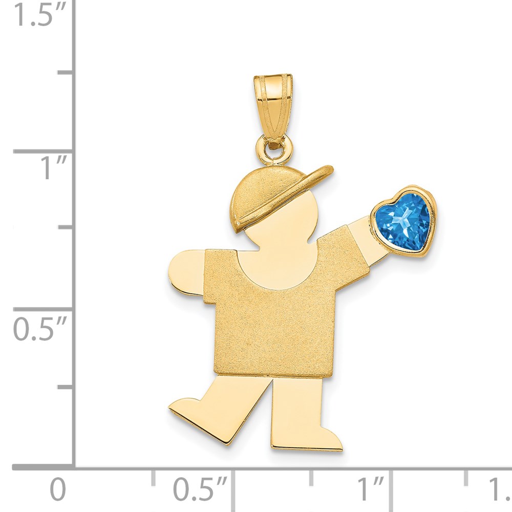 14k The Kids Boy with Blue CZ December Birthstone Engravable Kiss Charm
