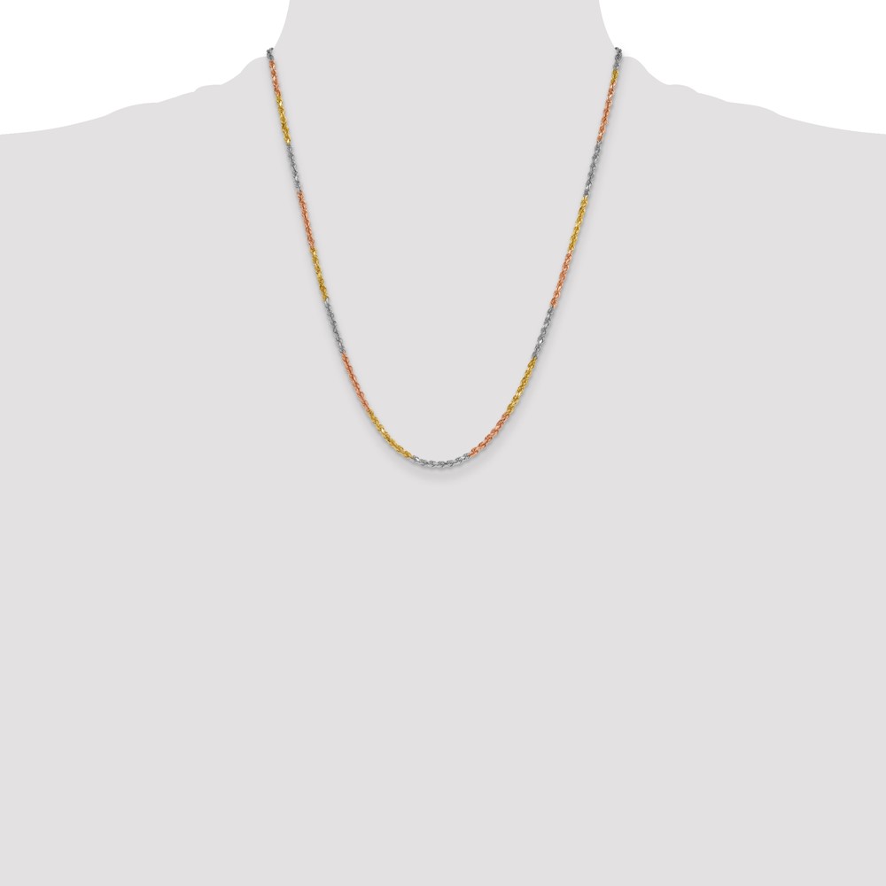 14K Tri-colored 2.9mm Diamond-cut Rope with Lobster Clasp Chain