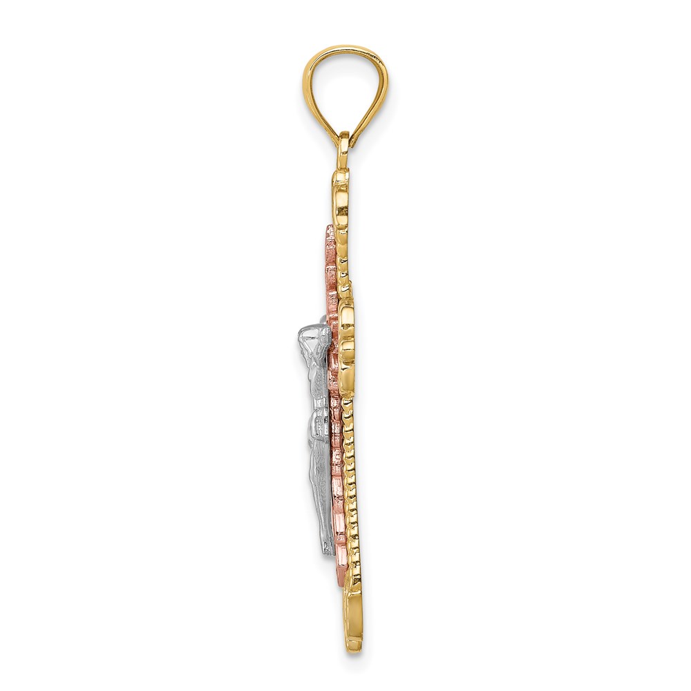 14K Tri-Color and White Rhodium Diamond-cut Crucifix Pendant