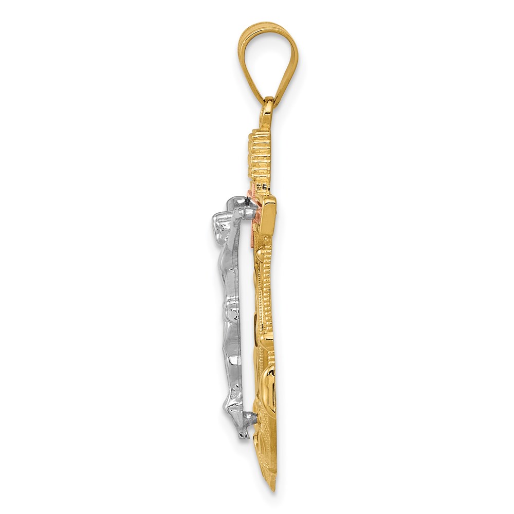 14k Tri-color Diamond-cut and Textured Mariners Crucifix Pendant