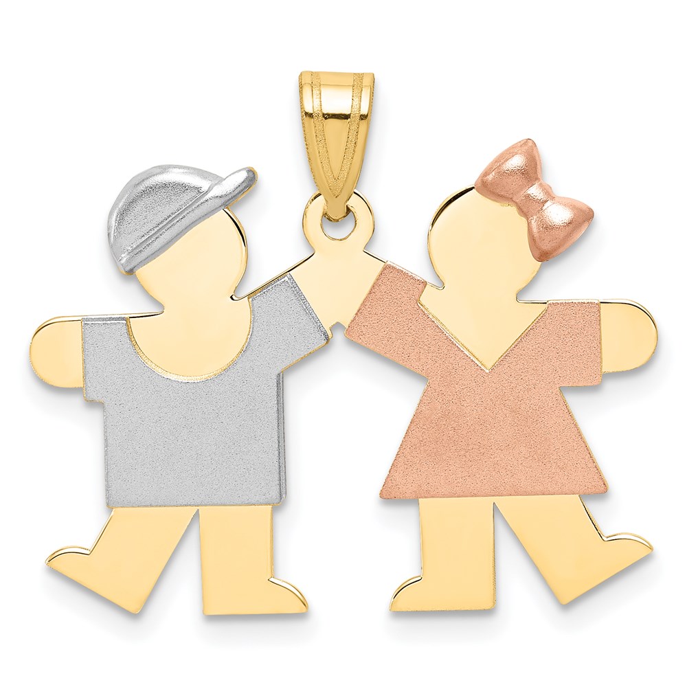 14k Tri-color The Kids Small Boy on Left and Girl on Right Engravable Kiss Charm