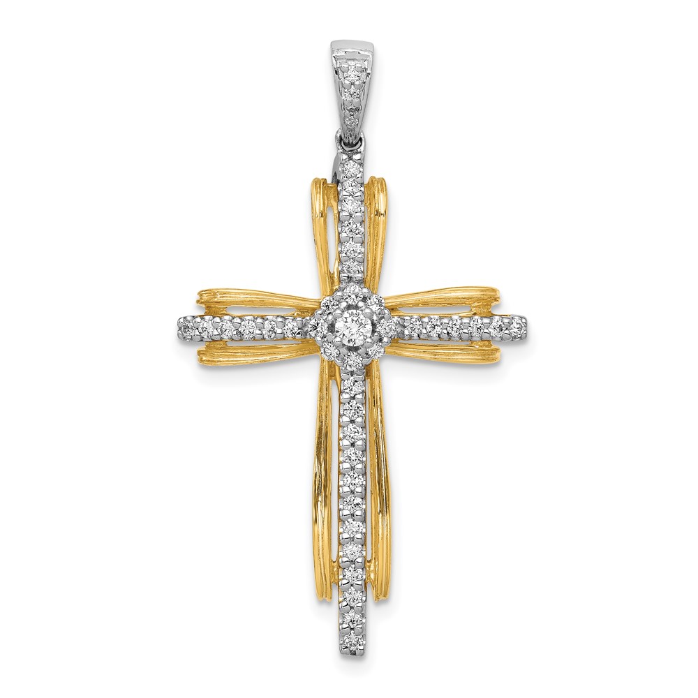14k Two-tone 1/3 carat Diamond Passion Cross Pendant