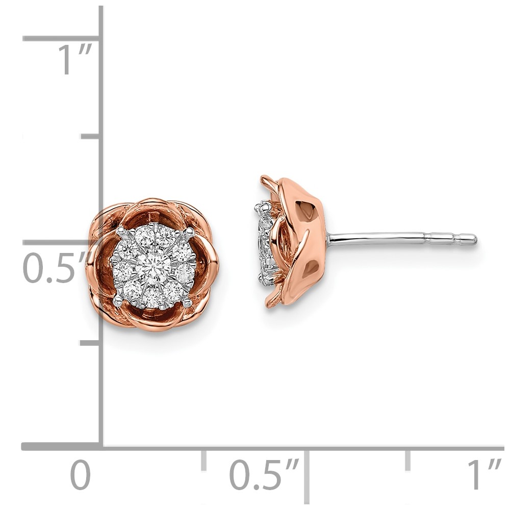 14k Two-Tone 1/4 carat Lab Grown Diamond VS/SI+ G+ Cluster Flower Post Earrings