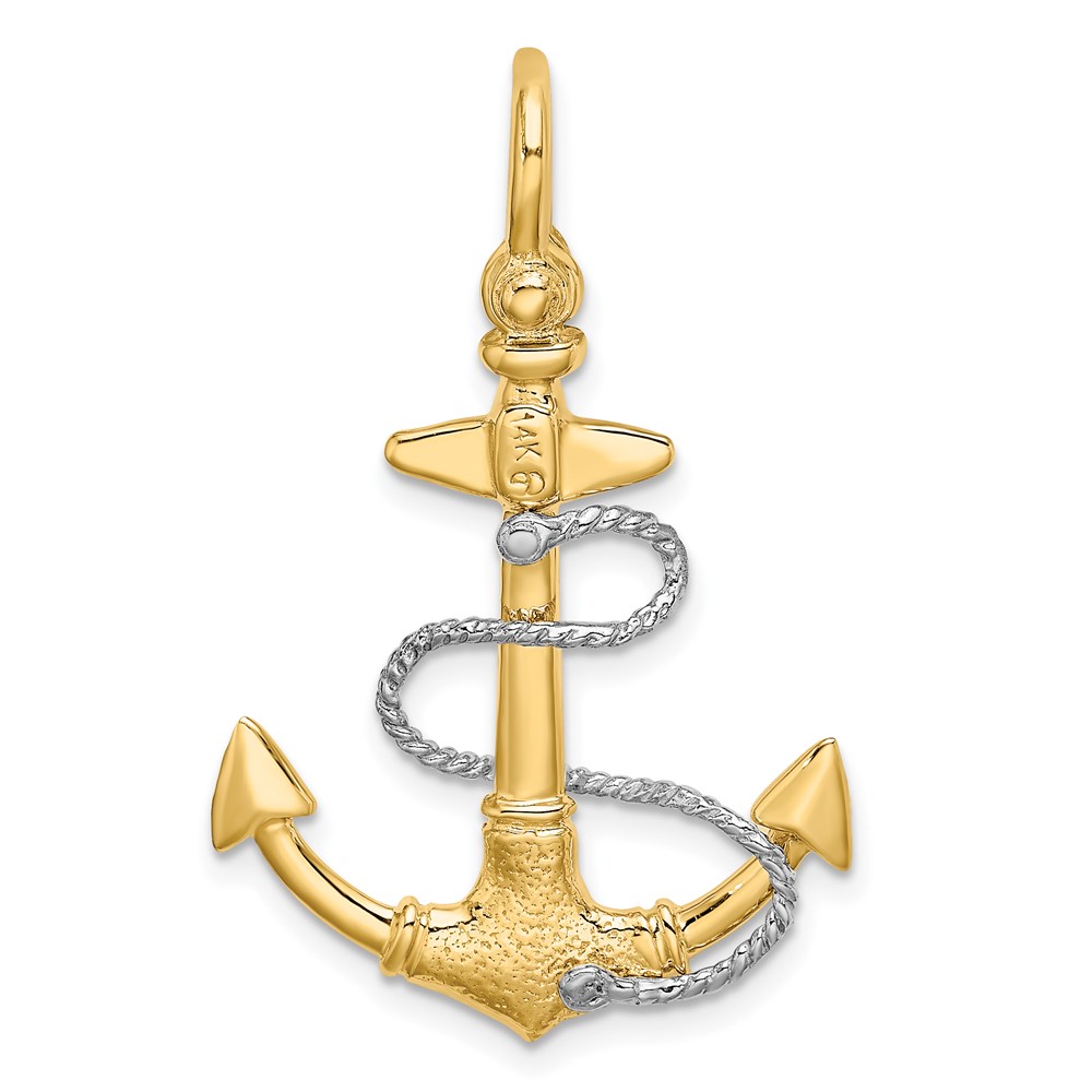 14K Two-tone 3-D Anchor with Rope and Shackle Bail Charm