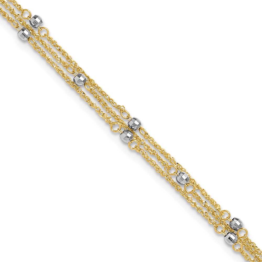 14k Two-tone 3-Strand Chain with Mirror Beads Plus Extender – Total Anklet