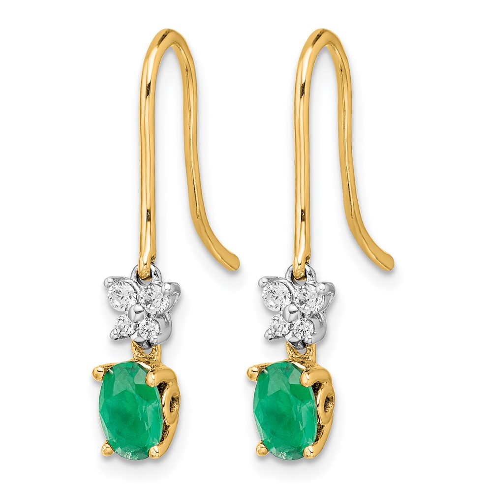 14k Two-Tone 6x4mm Oval Emerald and Diamond Shepherd Hook Earrings