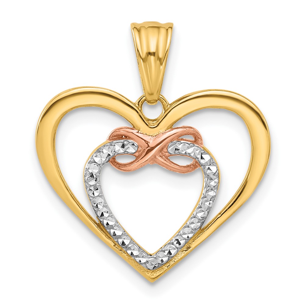 14K Two-tone and White Rhodium Diamond-cut Infinity Hearts Pendant
