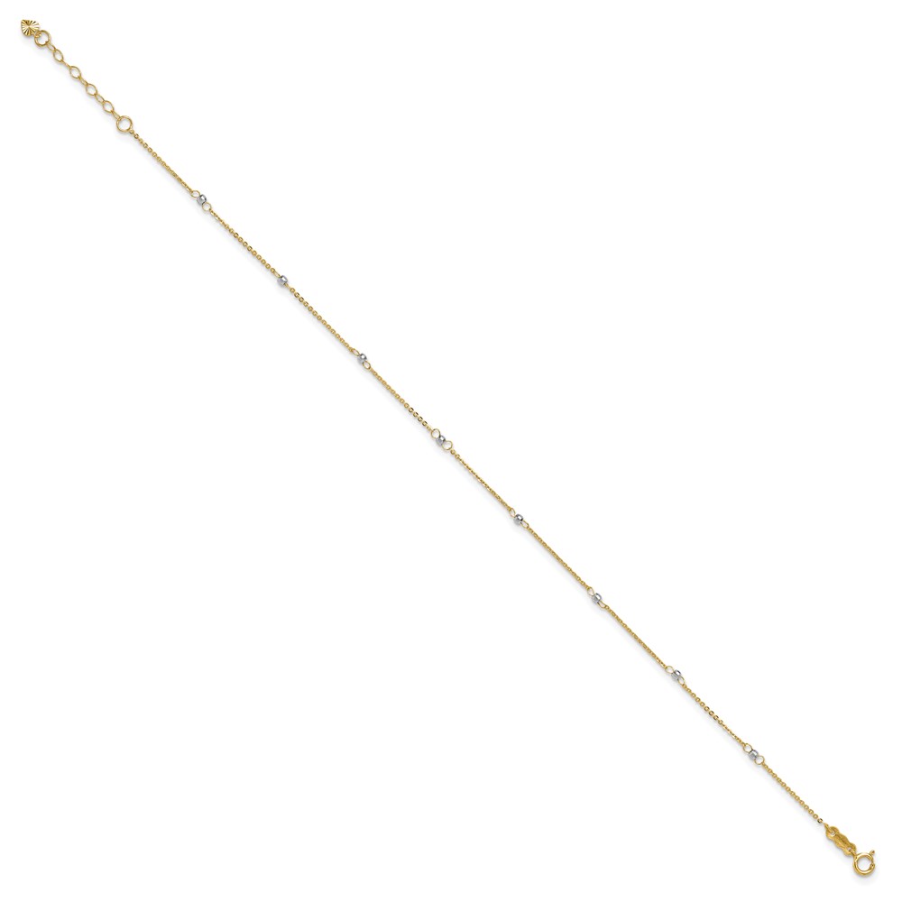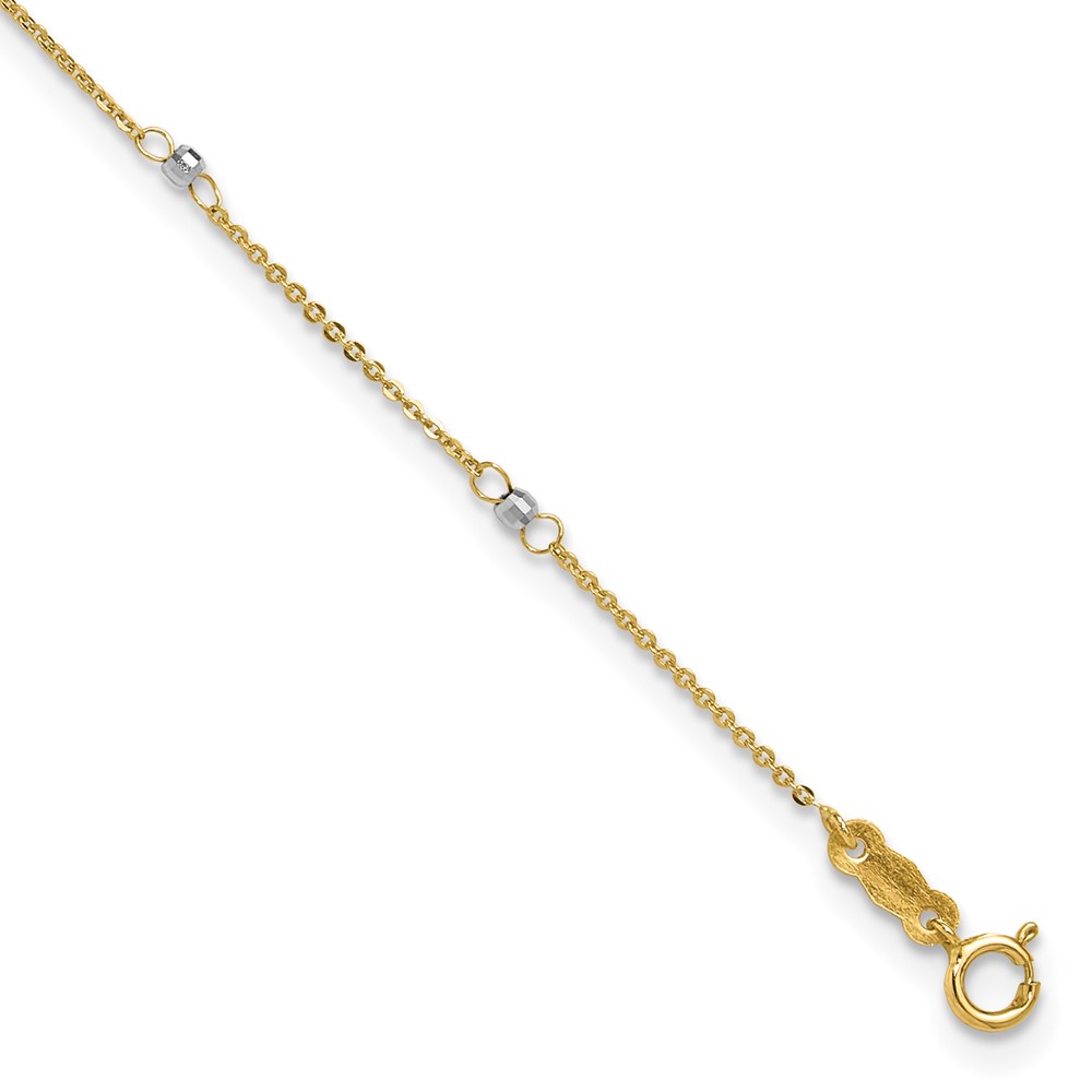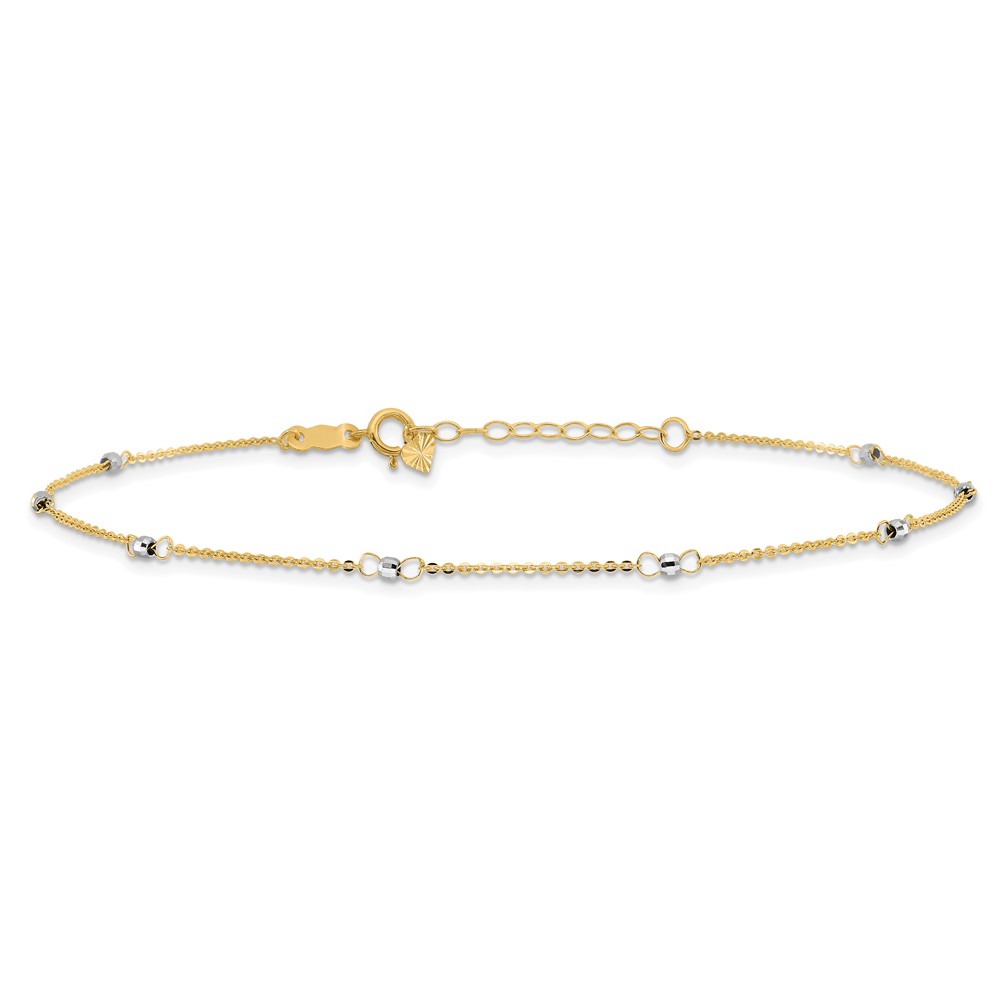 14k Two-tone Cable Chain Mirror Beads 8-Station Plus Extender – Total Anklet