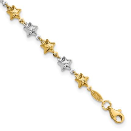 14k Two-tone Diamond-cut Puffed Stars and Oval Link 7.25 inch Bracelet