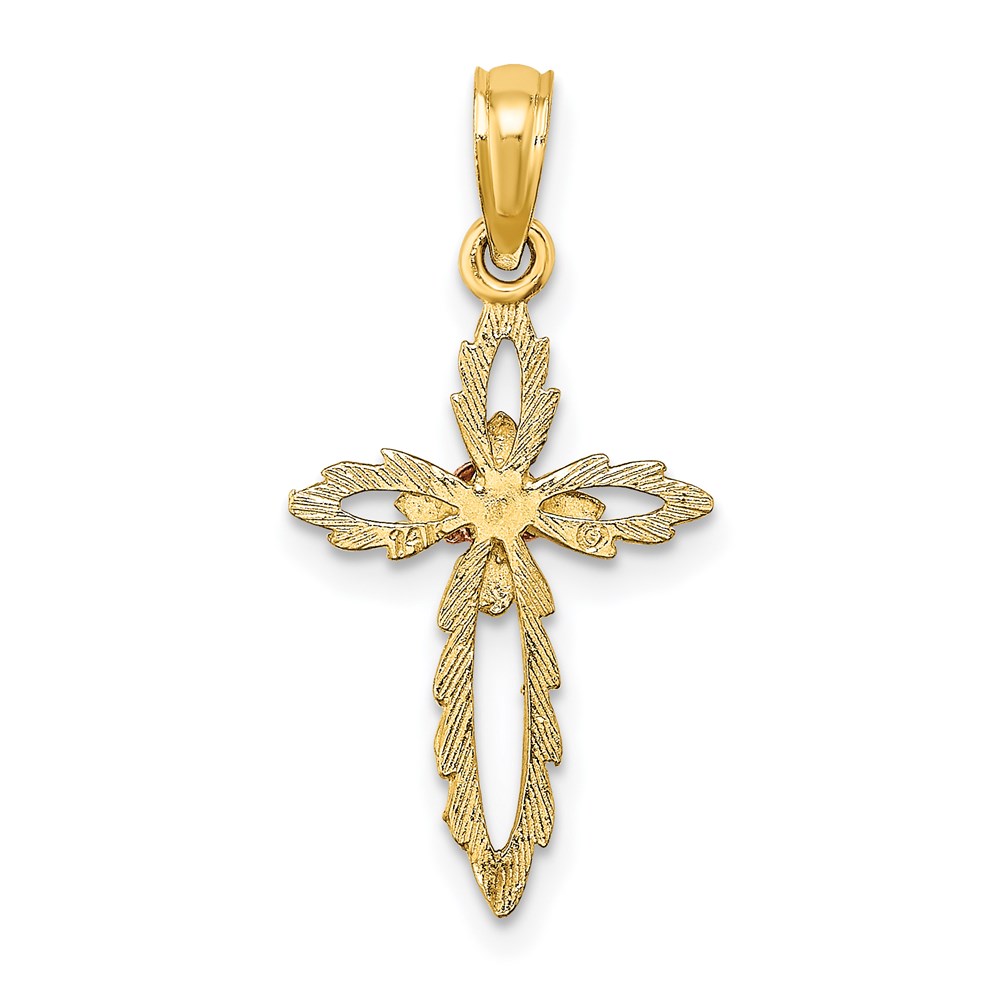 14k Two-Tone Cross with Cut-Out Flower Charm