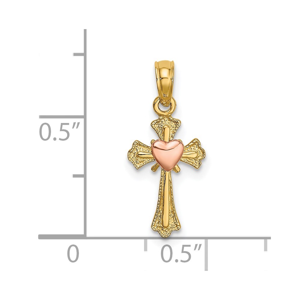 14k Two-Tone Cross with Heart Charm