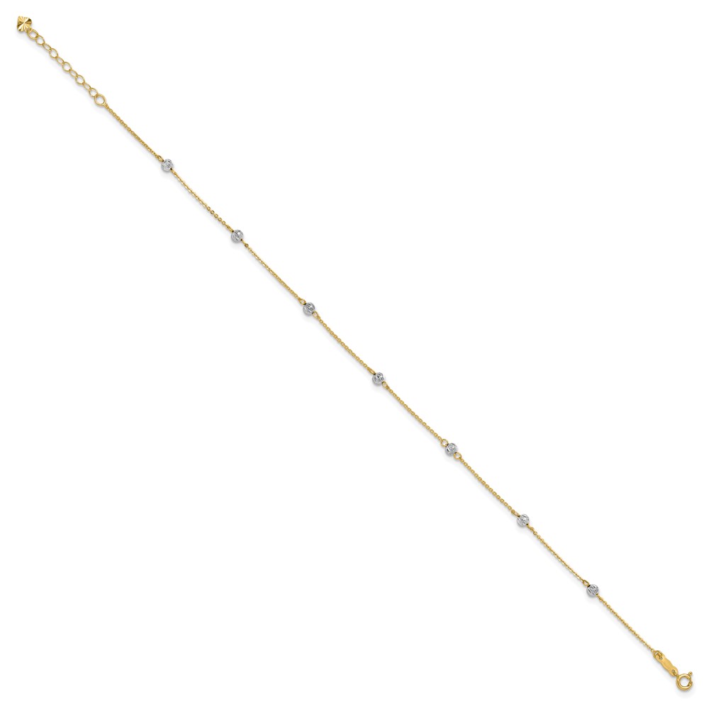 14K Two-tone Diamond-cut Beads 7-Station Plus Extender – Total Anklet