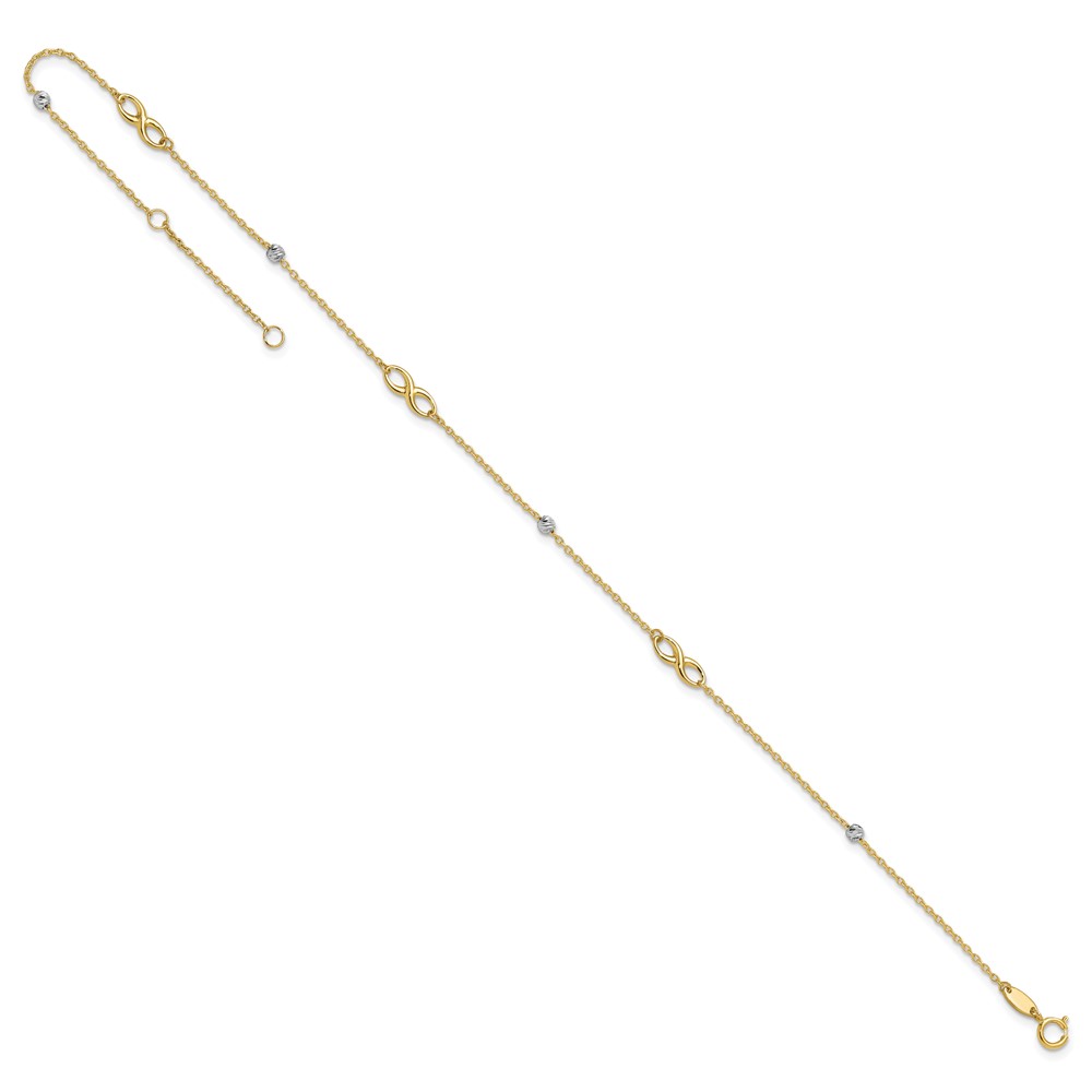 10K Two-Tone Infinity and Diamond-cut Beads Plus Extender – Total Anklet
