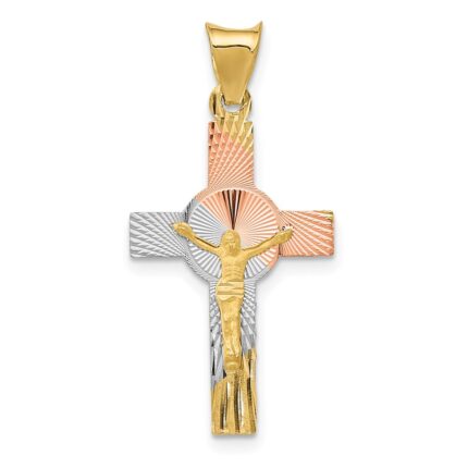 14K Two-tone Diamond-cut Crucifix Pendant