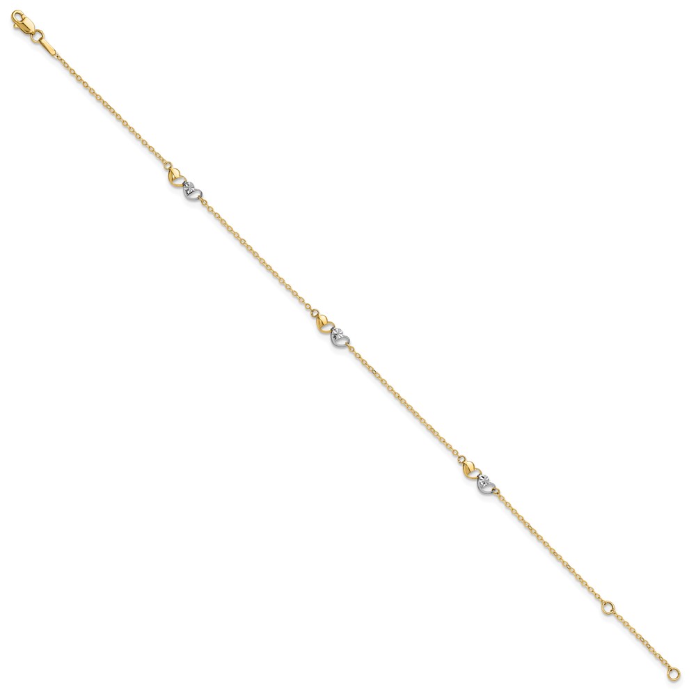 14k Two-tone Diamond-cut Triple Puffed Hearts Plus Extender – Total Anklet