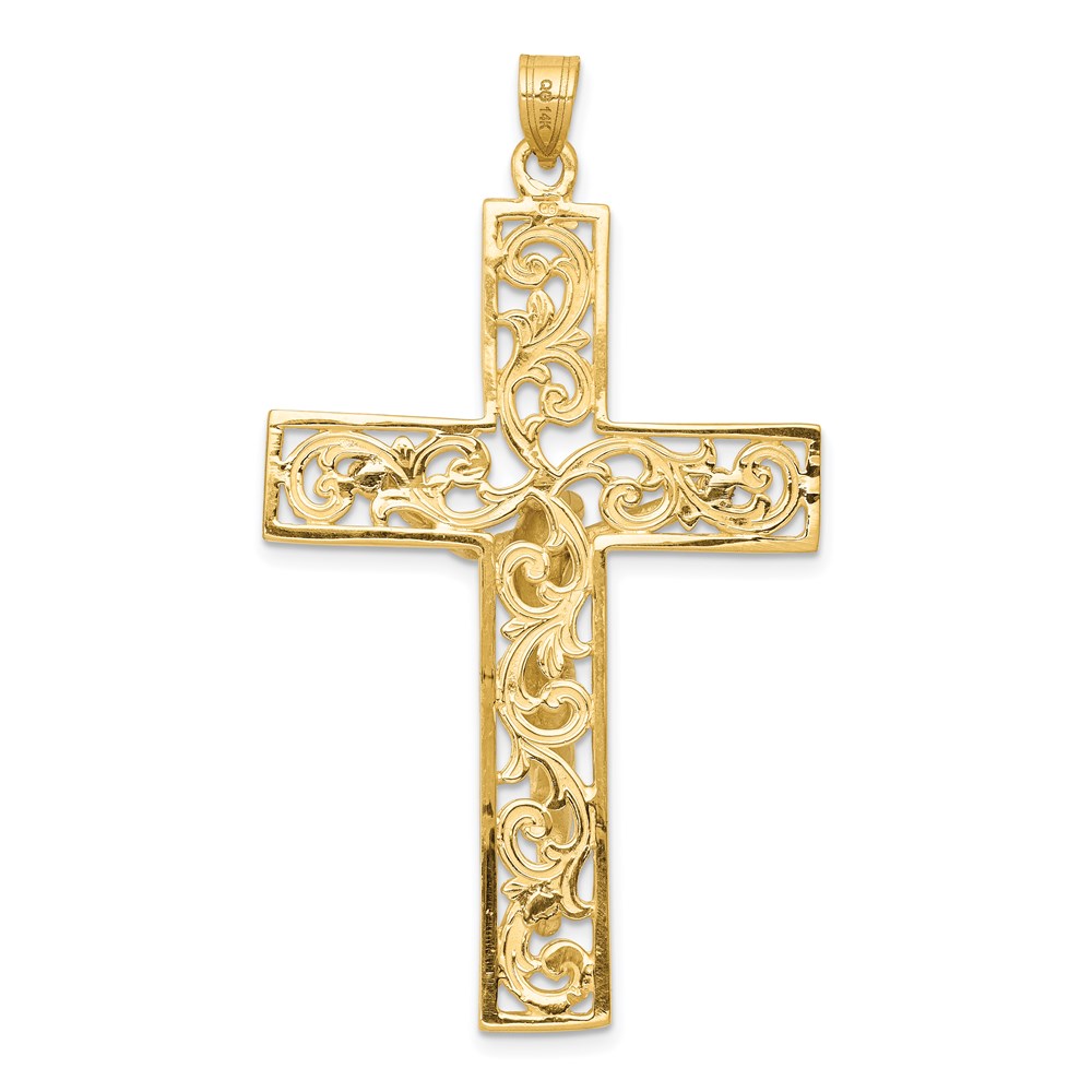 14k Two-tone Diamond-cut Filigree Crucifix Pendant
