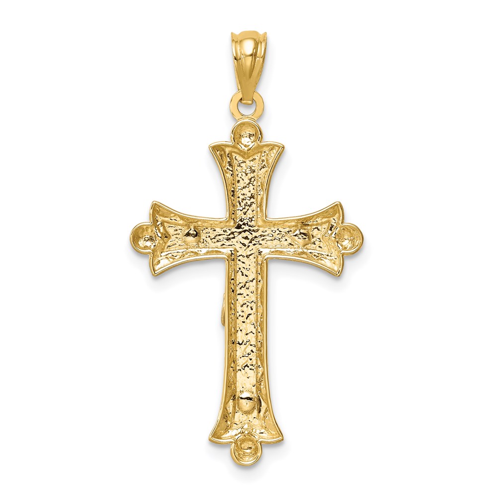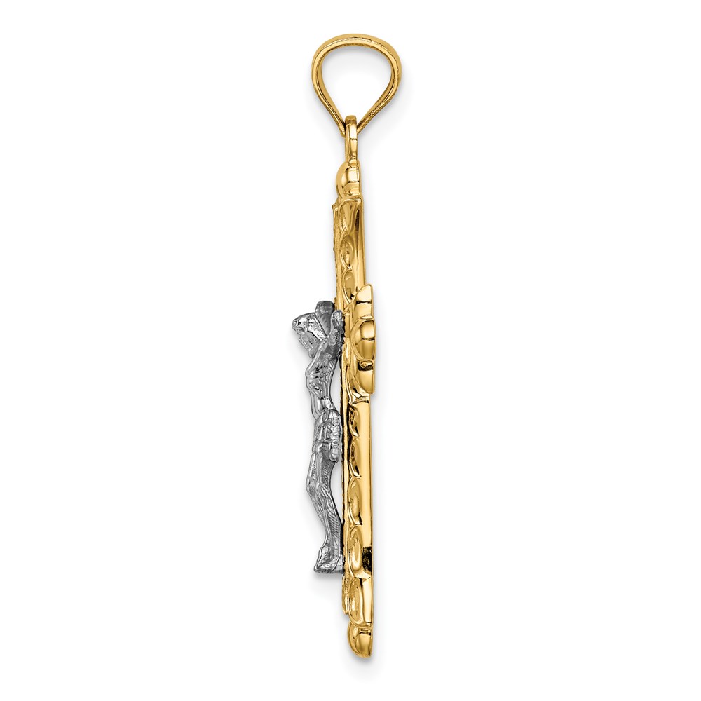 14K Two-Tone with White Rhodium Inri Budded Crucifix