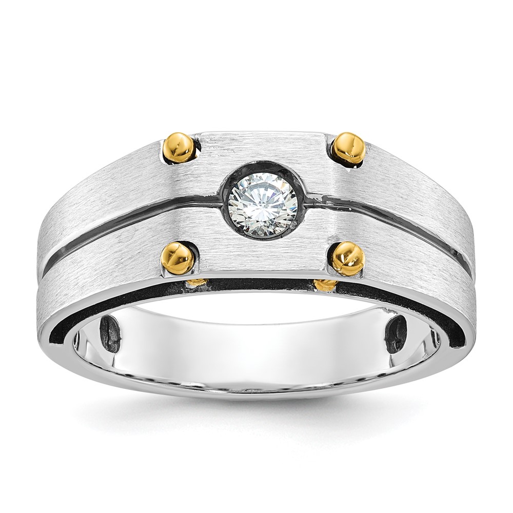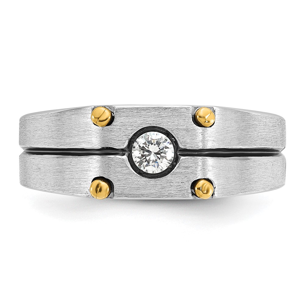 14k Two-tone IBGoodman Men’s Polished and Satin 1/5 carat Diamond Complete Ring