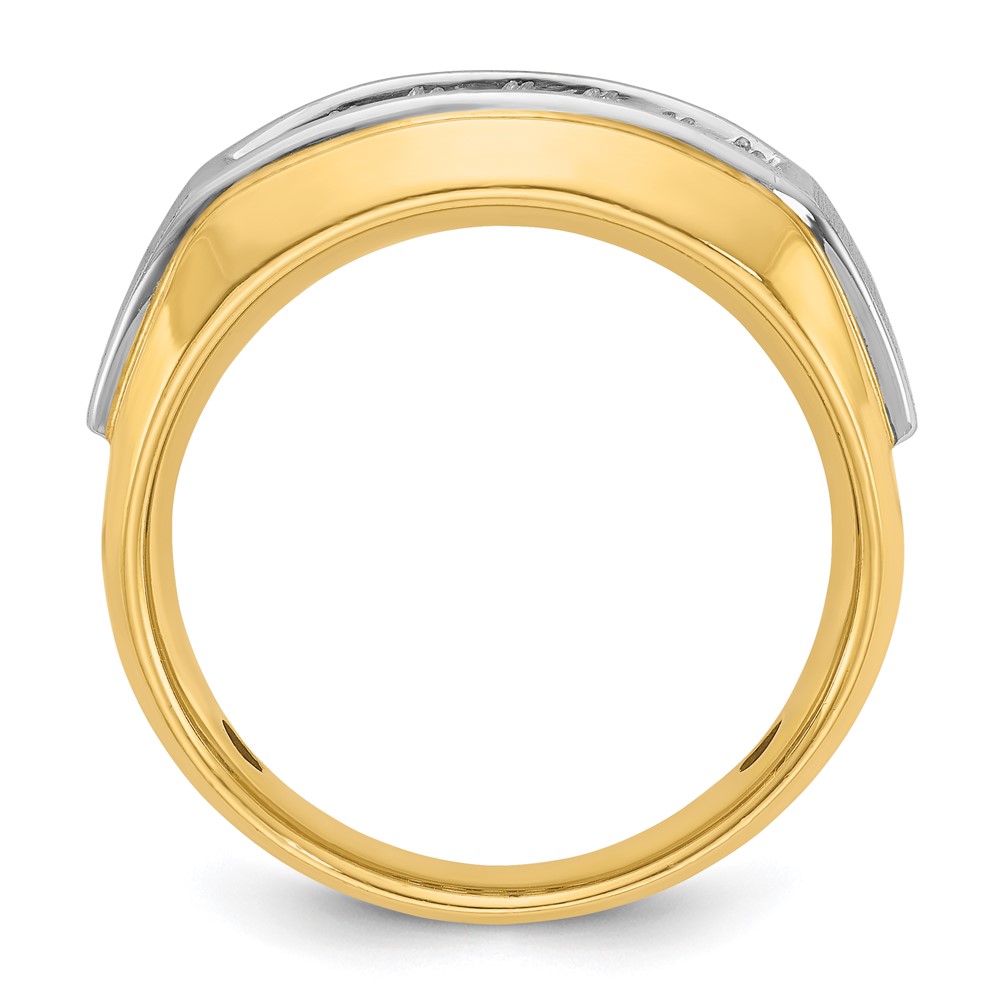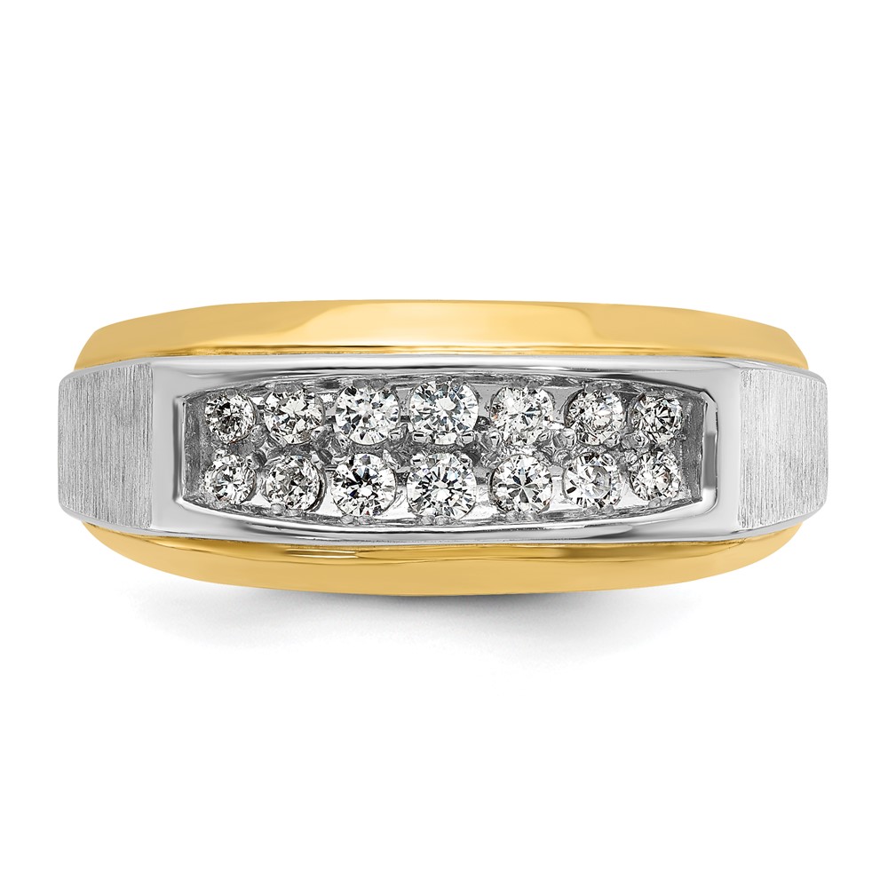 14k Two-tone IBGoodman Men’s Polished and Satin 2-Row 1/2 Carat AA Quality Diamond Ring