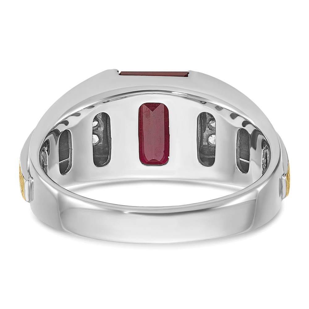 14k Two-tone IBGoodman Men’s Satin Created Ruby and 1/20 carat Diamond Complete Ring