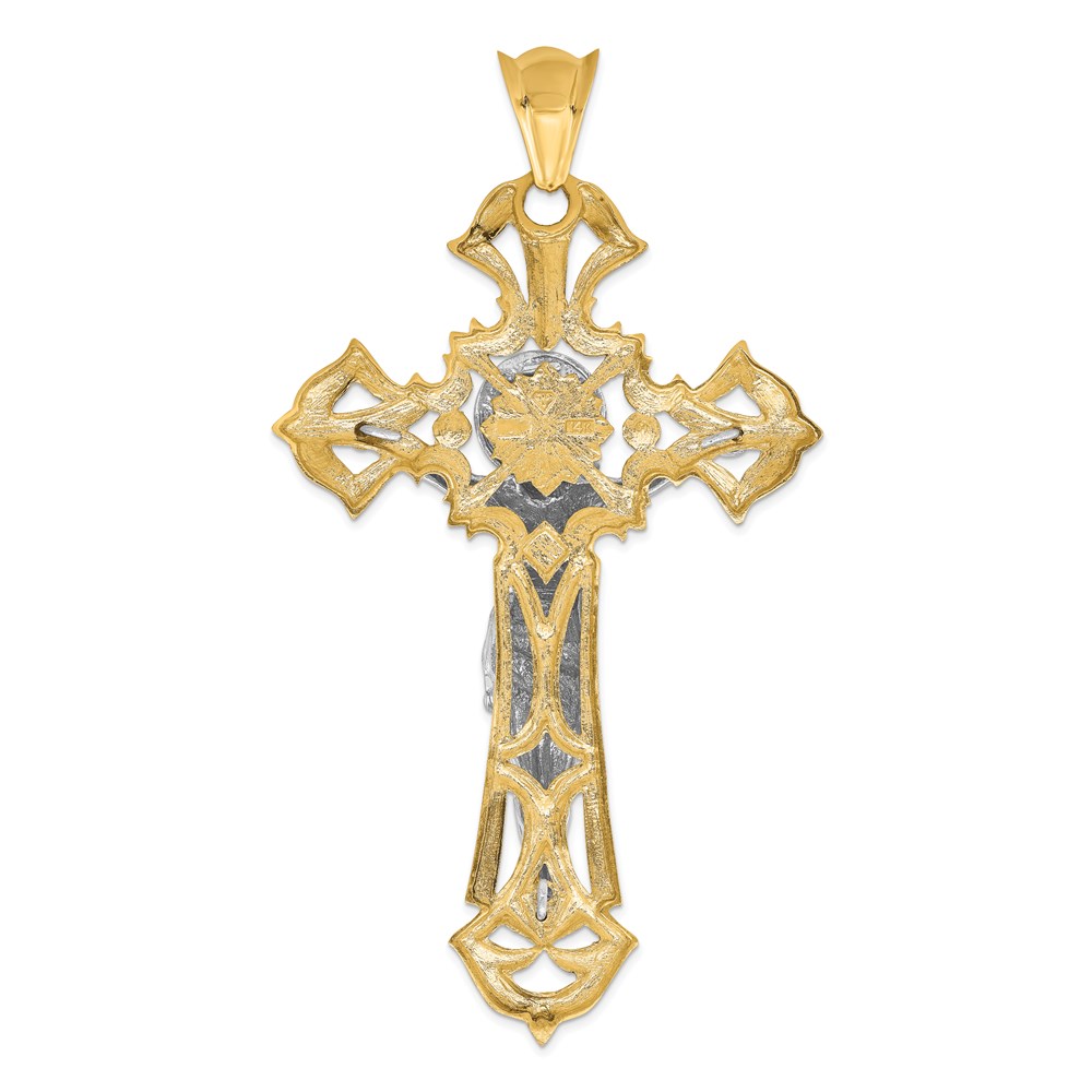 14k Two-tone Large Polished with Red CZs Crucifix Pendant