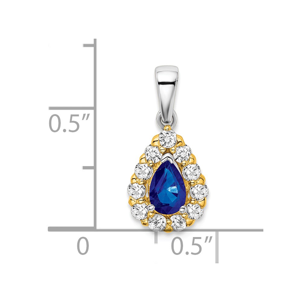 14k Two-tone Pear Sapphire and Diamond Halo Pendant