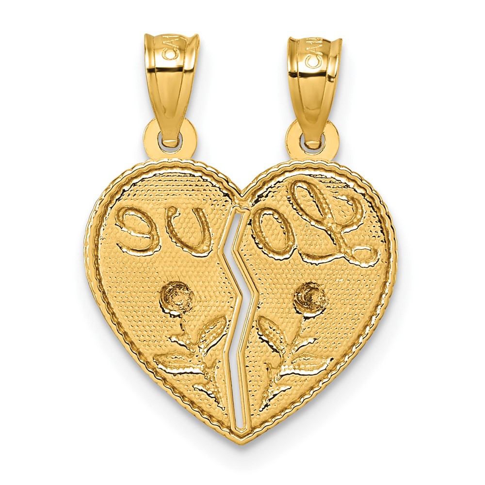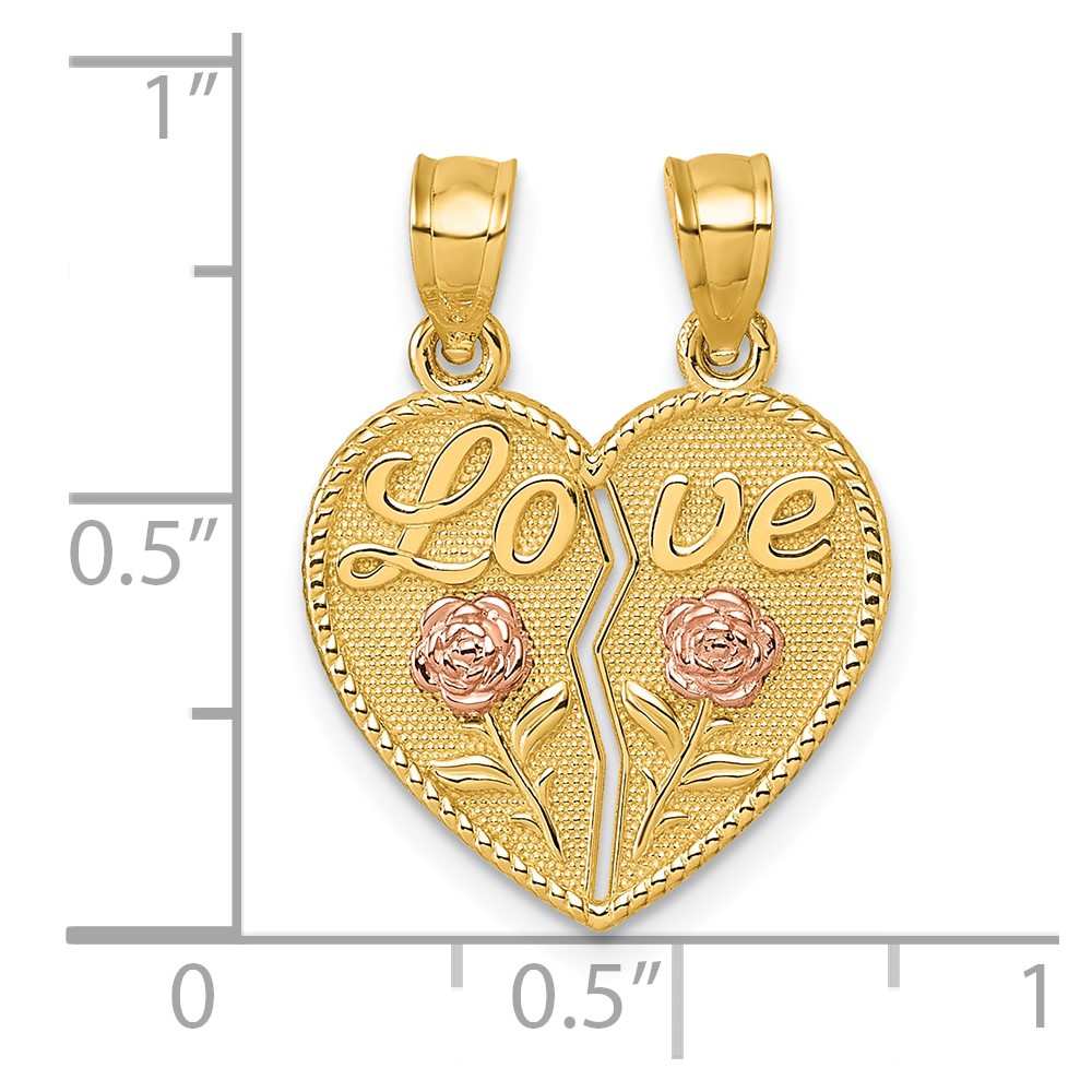 14k Two-tone Polished Break-Apart Heart With LOVE And Roses Pendant