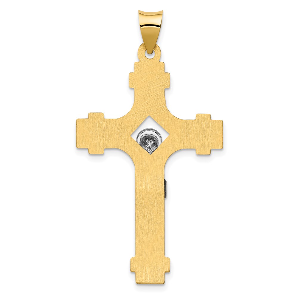 14k Two-tone Polished Fleur de Lis INRI Crucifix Pendant