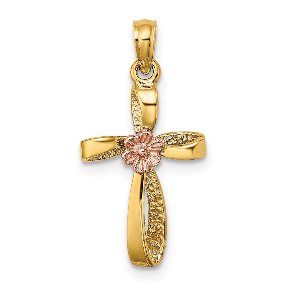 14K White Gold Polished 1/5 carat Diamond Framed Dangle Cross Pendant