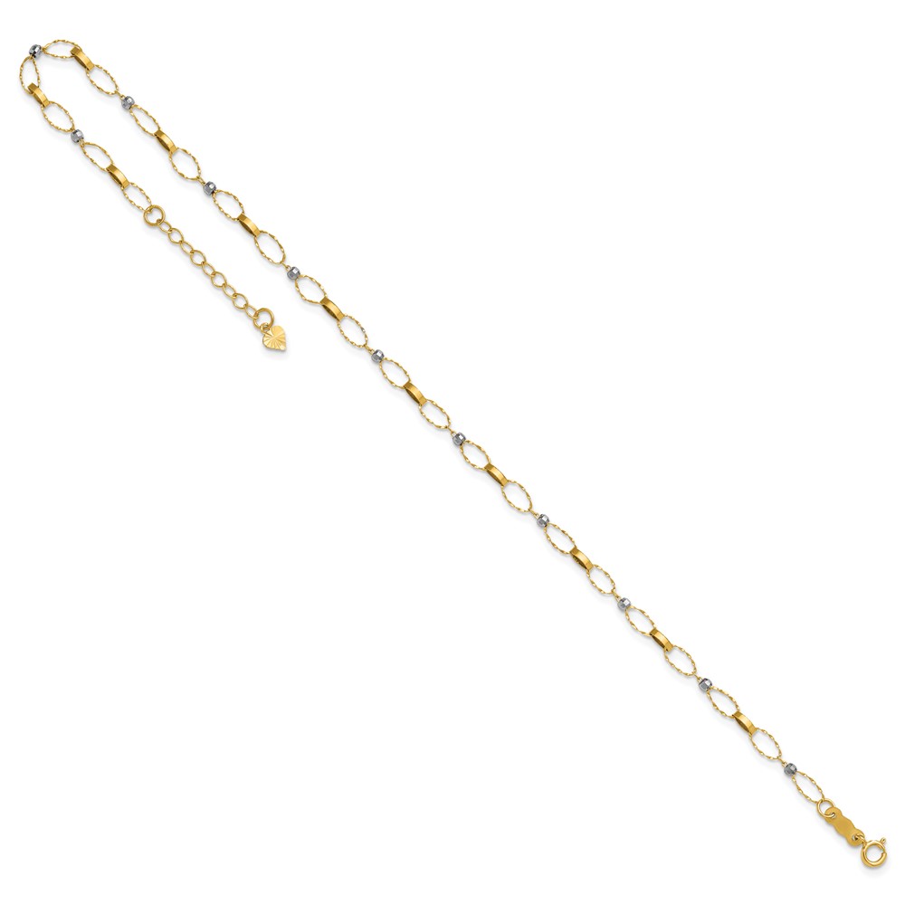 14k Two-tone Twisted Links and Mirror Beads Plus Extender – Total Anklet