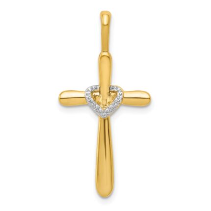 14k Two-tone White and Rose Heart with Cross 1/20 carat Diamond Pendant
