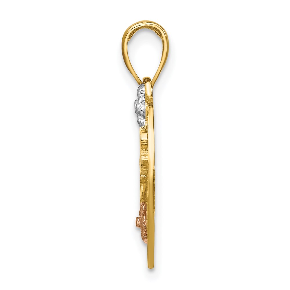 14k Two-tone with White Rhodium #1 MOM Heart with Flower Charm