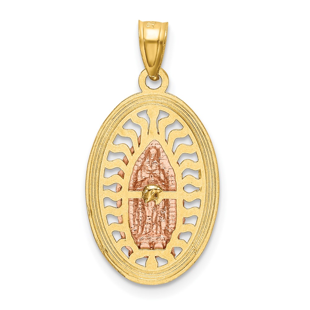 14K Two-tone with White Rhodium Diamond-cut Our Lady of Guadalupe Oval Charm