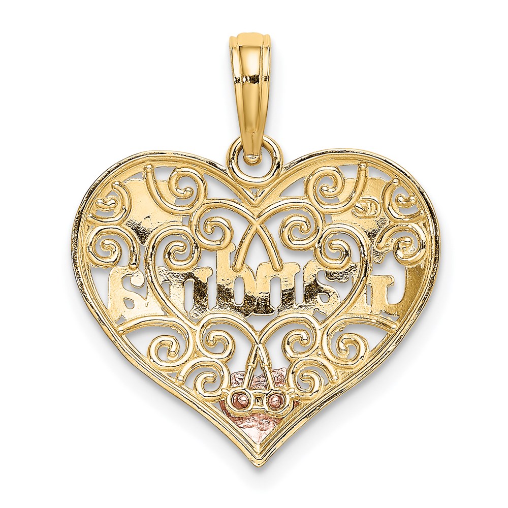 14k Two-tone with White Rhodium GRANDMA In Filigree Heart Charm