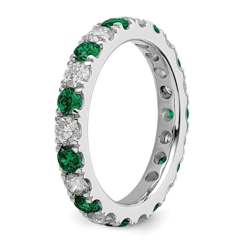 14k White Gold 1/2 carat Lab Grown Diamond VS/SI+ G+ and Lab Created Emerald Size 8 Eternity Band