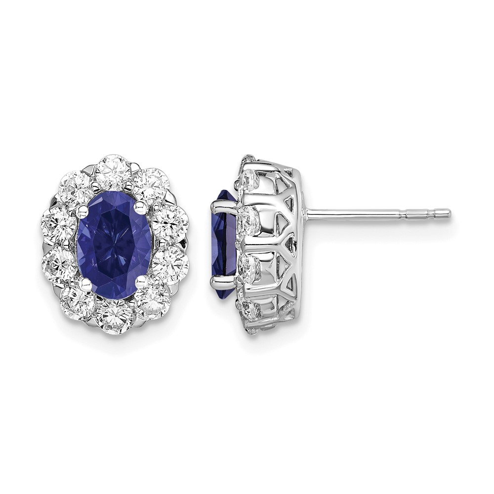 14k White Gold 1 1/5 carat Lab Grown Diamond VS/SI+ G+ and Oval Created Sapphire Halo Post Earrings