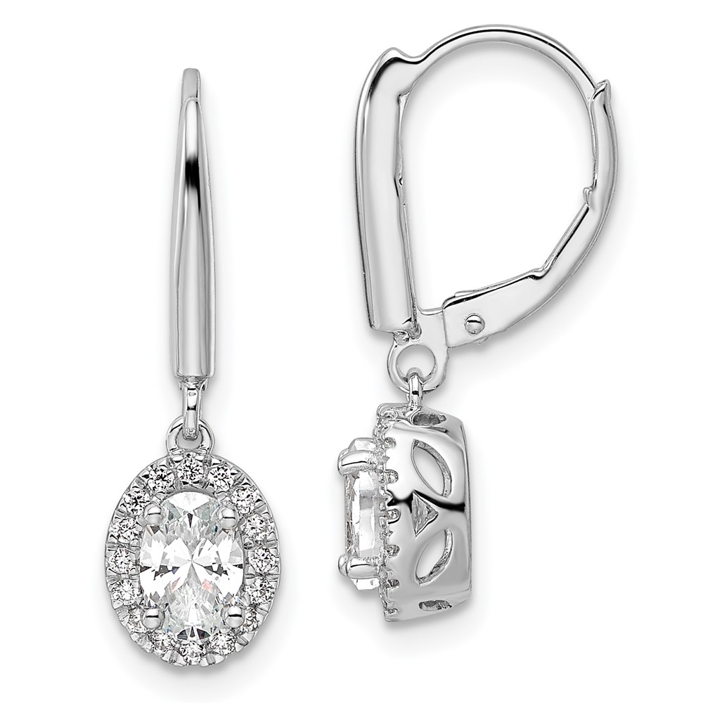 14k White Gold 1 1/5 carat Lab Grown Diamond VS/SI+ G+ Complete Oval Drop Leverback Earrings