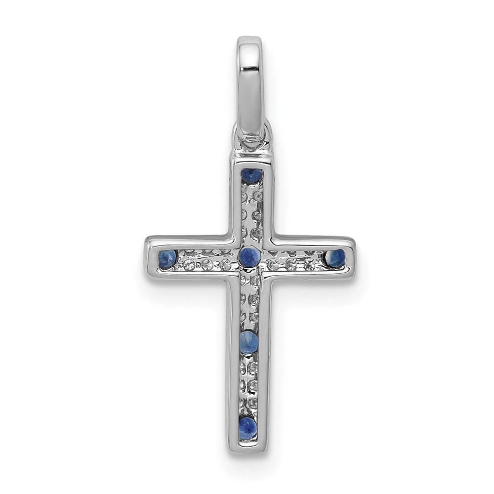 14k White Gold 1/15 carat Diamond and Sapphire Cross Pendant