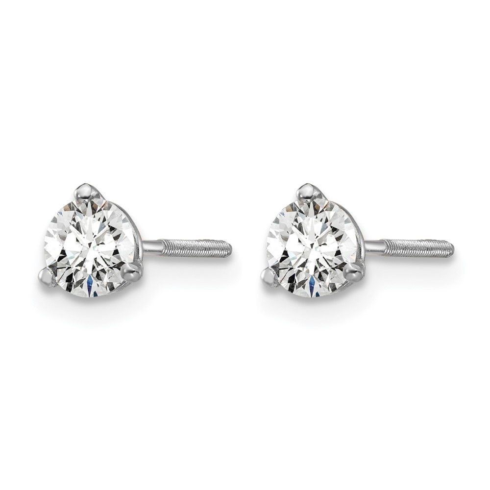 14k White Gold 1/2 carat Certified Lab Grown Diamond VS/SI+ G+ Round Complete Three Prong Screwback Stud Earrings