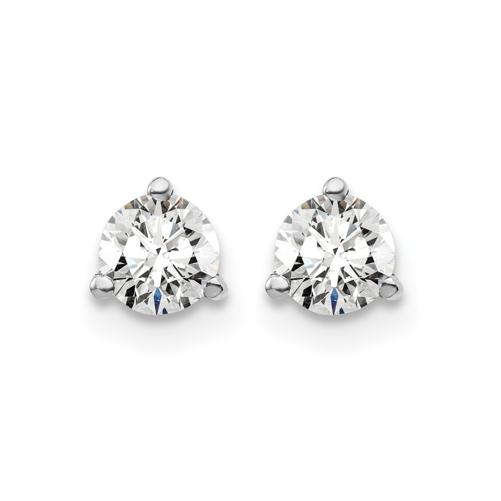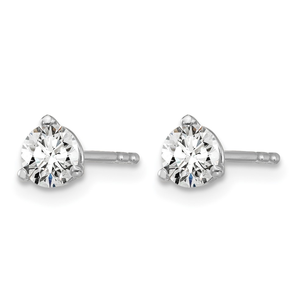 14k White Gold 1/2 carat Lab Grown Diamond VS+ F+ Round Complete Three Prong Stud Earrings
