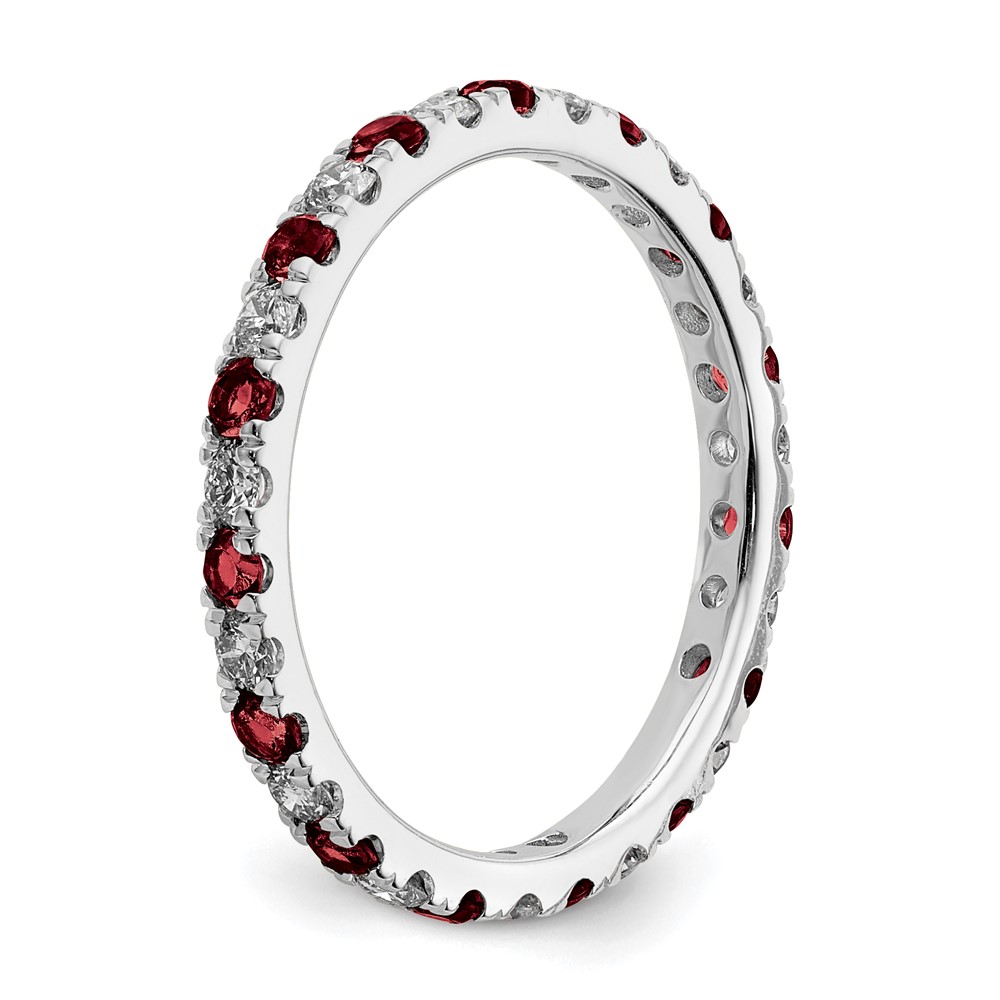 14k White Gold 1/2 carat Lab Grown Diamond VS/SI+ G+ and Lab Created Ruby Size 8.5 Eternity Band