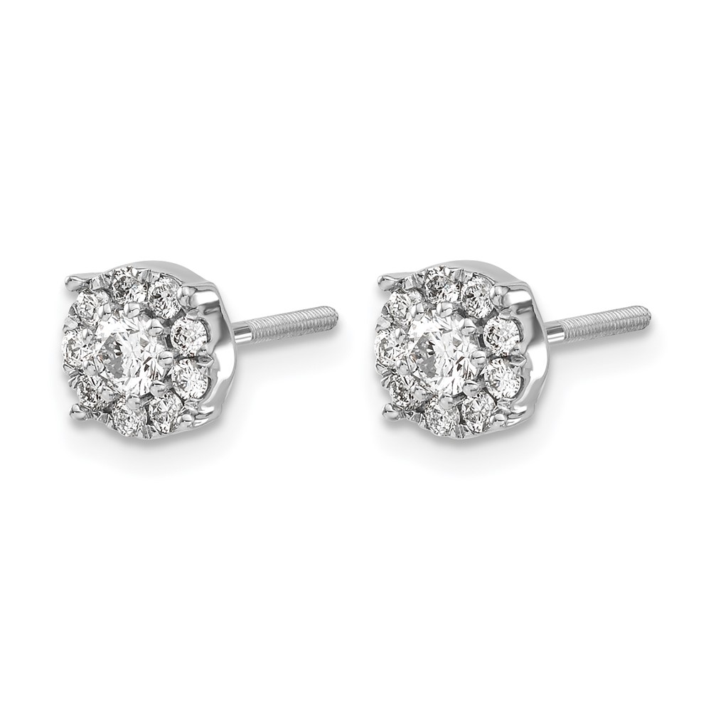 14k White Gold 1/2 carat Diamond Halo Cluster Screwback Post Earrings
