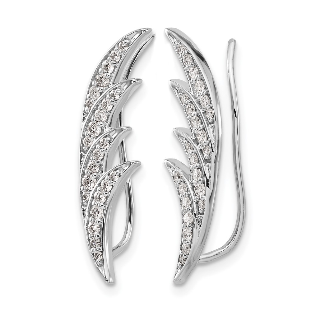 14k White Gold 1/3 carat Diamond Lightning Ear Climber Earrings