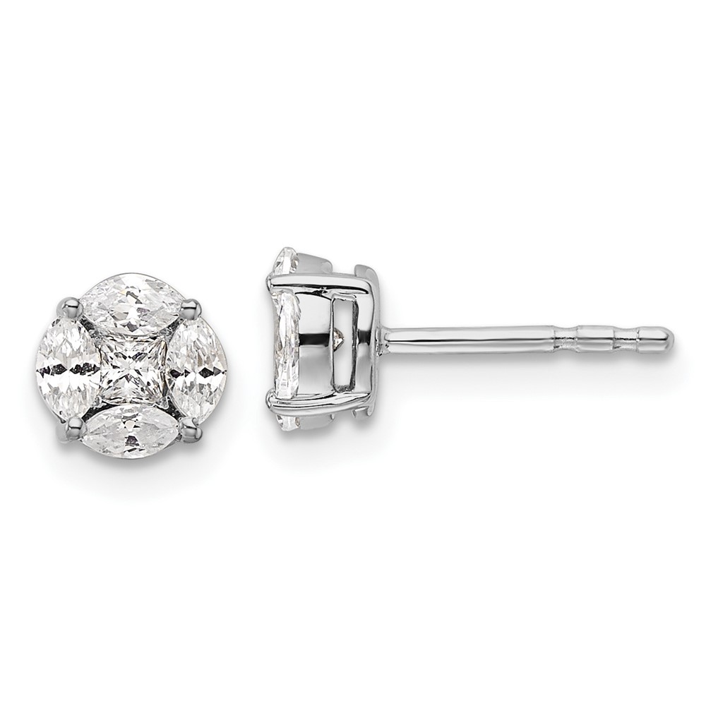14k White Gold 1/2 carat Lab Grown Diamond VS/SI+ G+ Complete Round and Marquise Halo Post Earrings