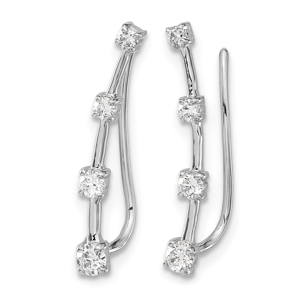 14k White Gold 1/3 carat Diamond Graduated 4-stone Ear Climber Earrings