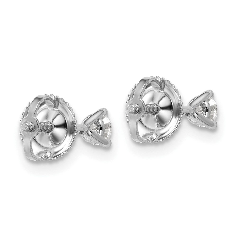 14k White Gold 1/4 carat Lab Grown Diamond VS+ F+ Round Complete Three Prong Screwback Stud Earrings