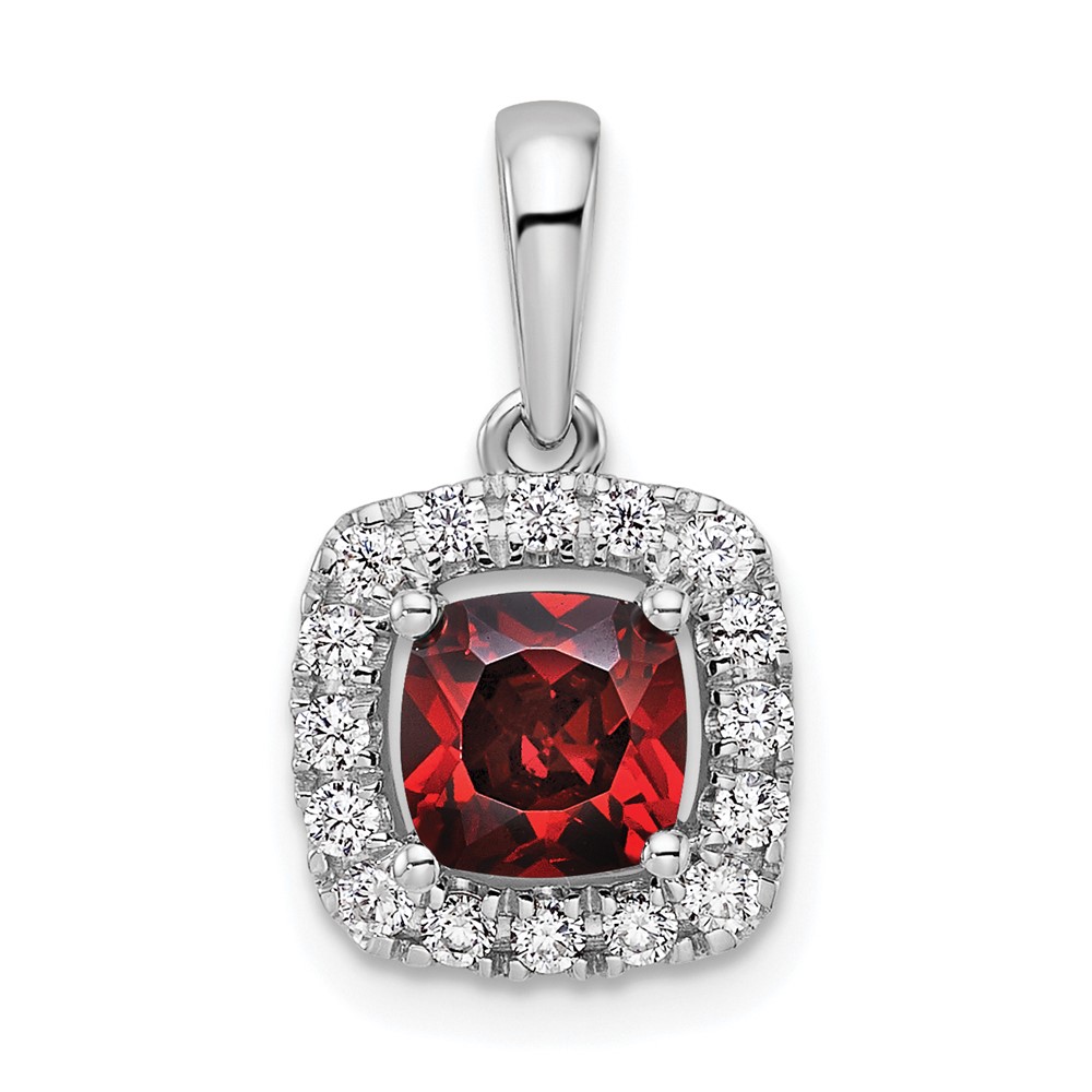 14k White Gold 1/4 carat Lab Grown Diamond VS/SI+ G+ January Birthstone Garnet Halo Pendant