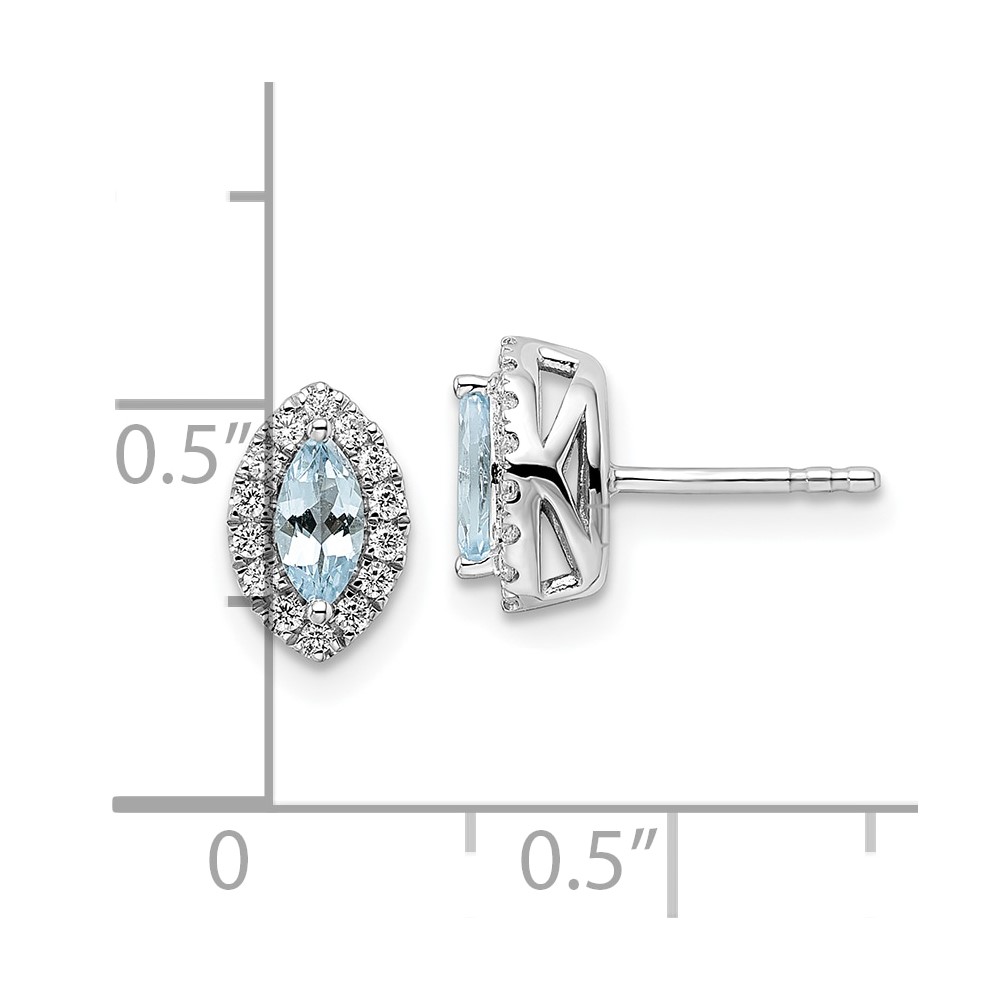 14k White Gold 1/5 carat Lab Grown Diamond VS/SI+ G+ and Aquamarine March Birthstone Post Earrings