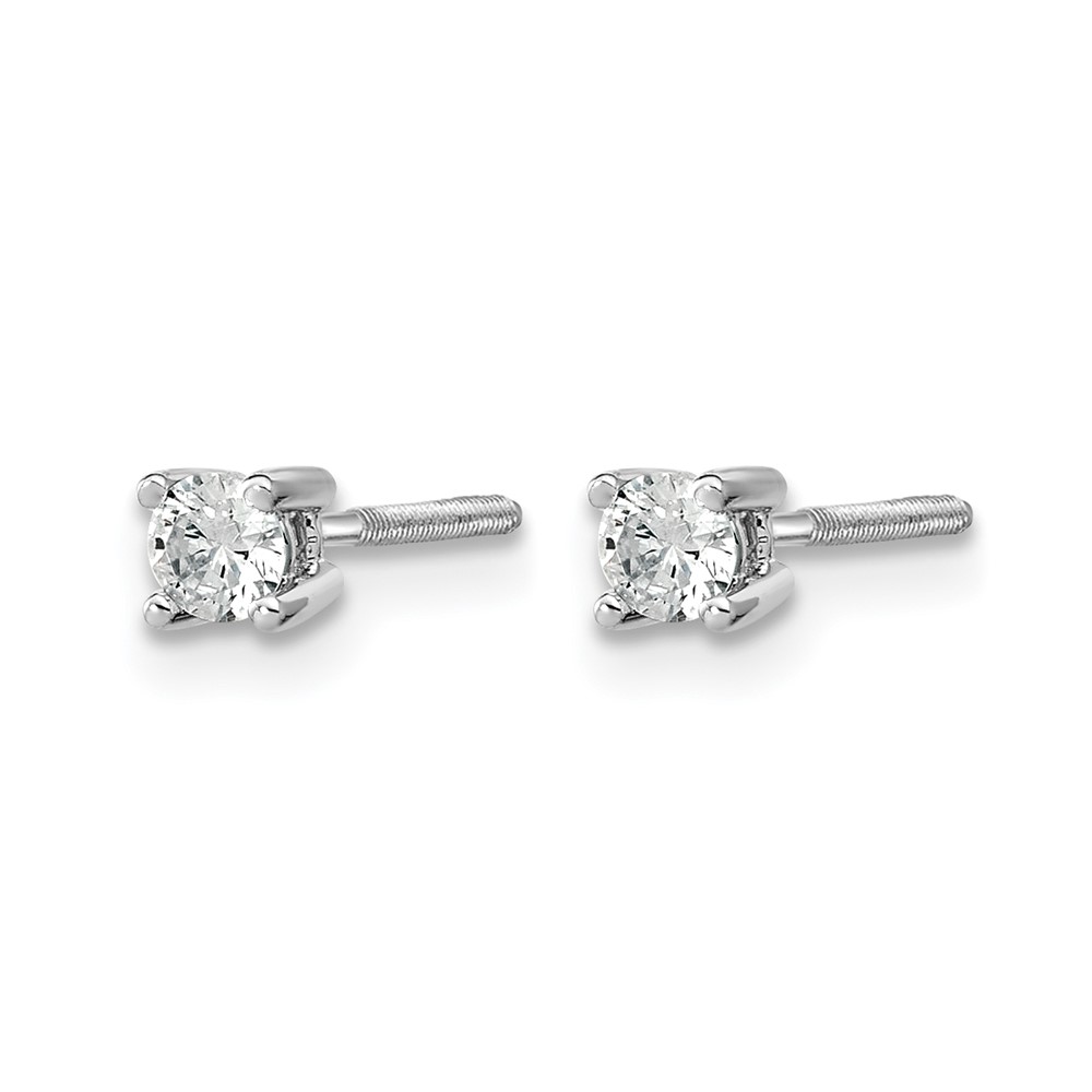 14k White Gold 1/5 carat Lab Grown Diamond VS/SI+ G+ Round Complete Four Prong Screwback Heavyweight Stud Earrings