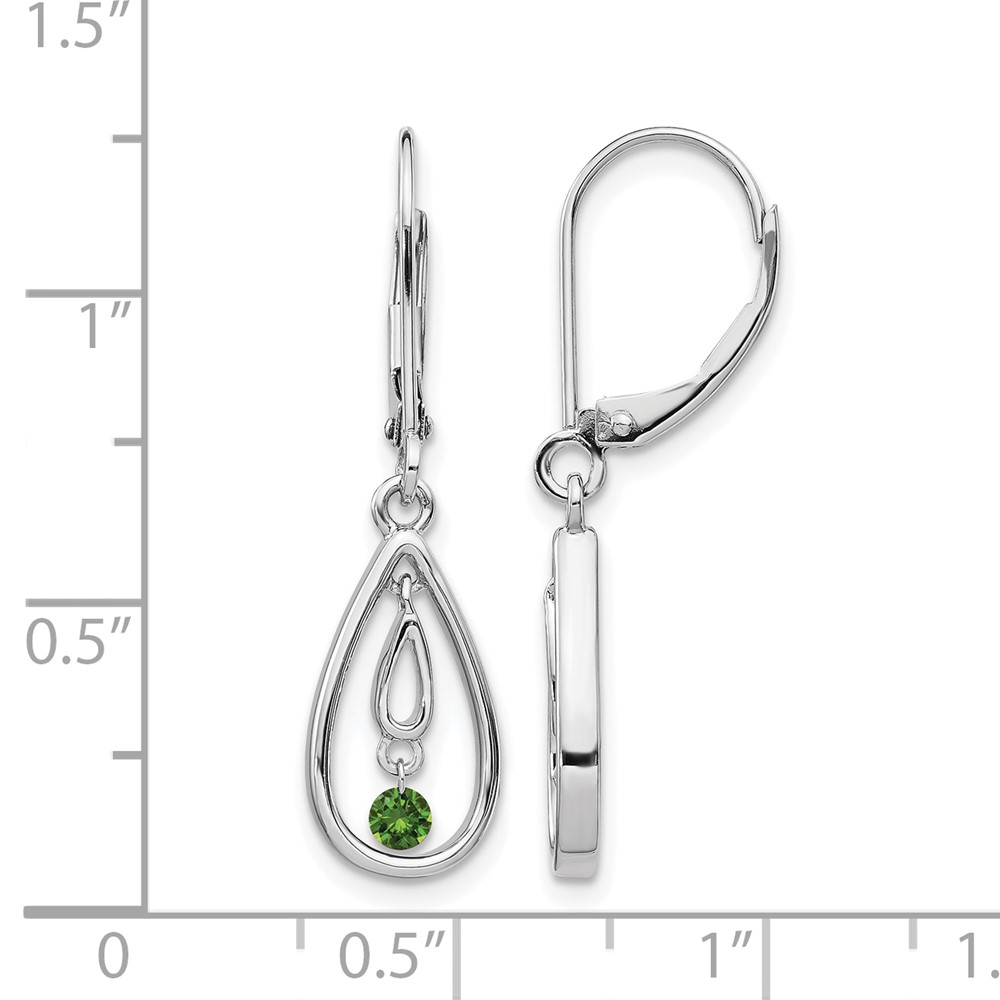 14k White Gold 1/8 carat Green Diamond Teardrop Leverback Earrings